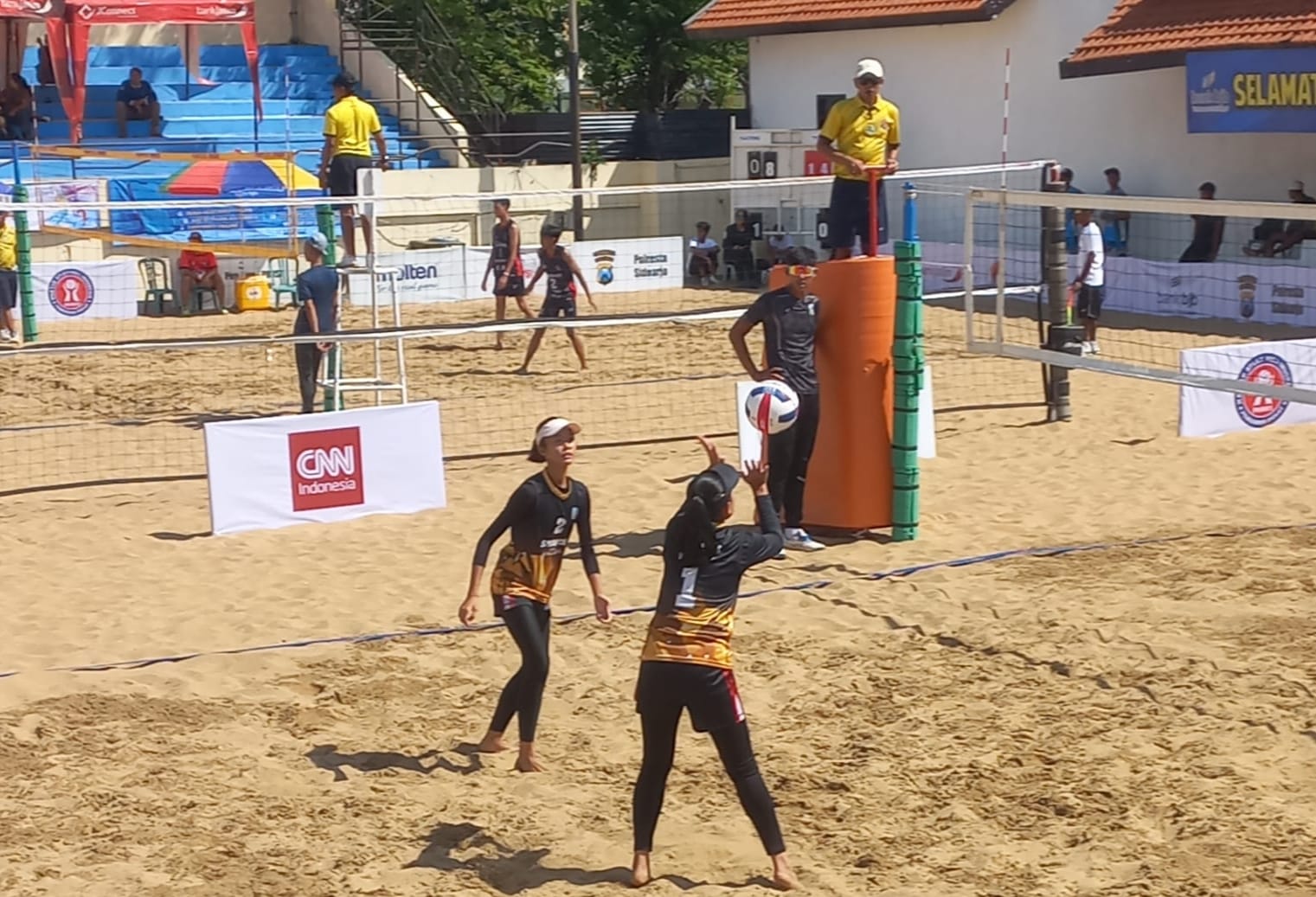 SIDOARJO : Sebanyak 25 tim putra dan 24 tim putri mengikuti kejuaraan nasional voli pantai antar klub U17 MAVI Cup di lapangan voli pantai Sidoarjo 23-27 Juli 2025.